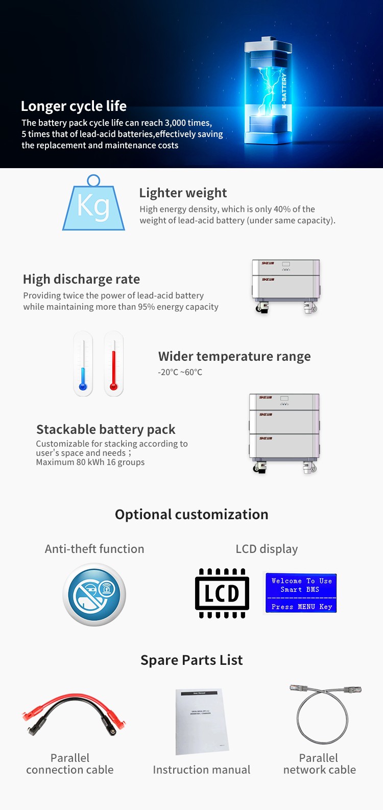 SK-ST5120 All in One Stackable 51.2V 100AH-400AH Lifepo4 Battery Pack with 6.2KW Solar Inverter
