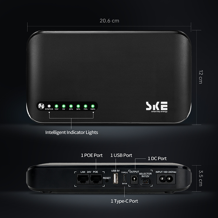 POE-830P-LFP-Mini UPS 2000mah 5V 9V 12V 24V 18W with Type-C