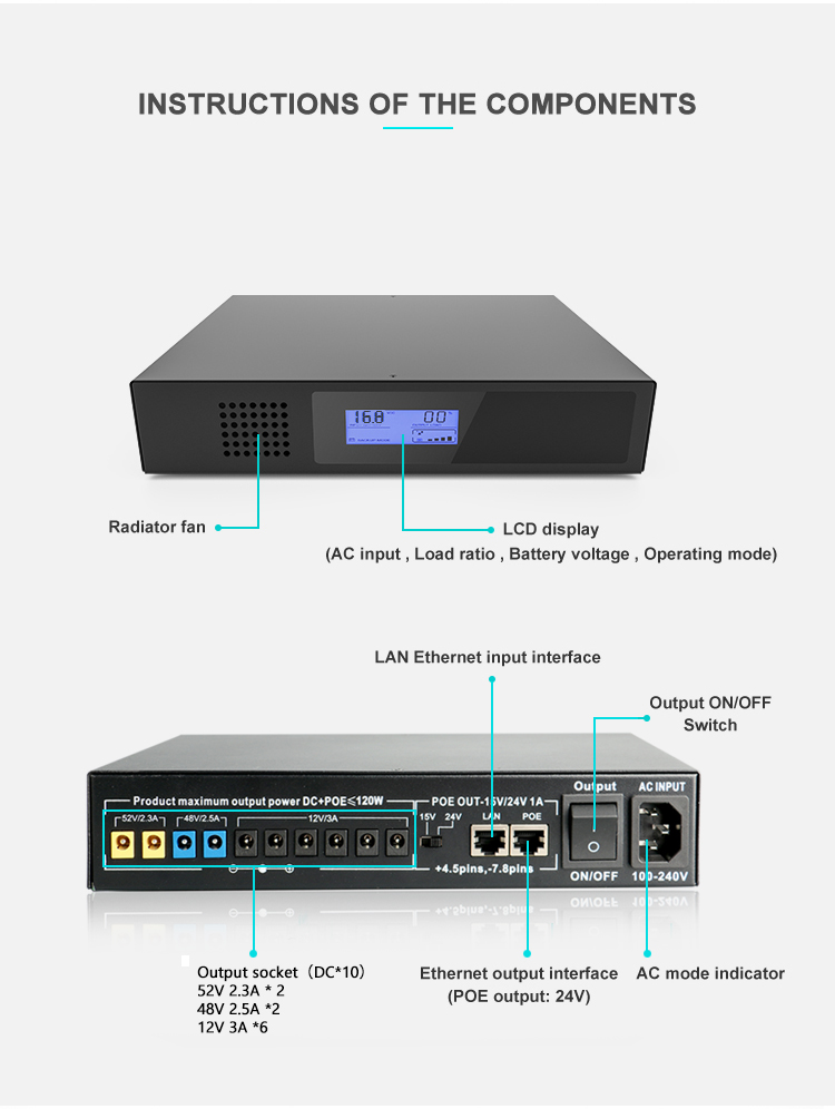 POE-120W-48V Mini UPS 12V 52V 48V DC 120W with 17600mah Lithium Battery