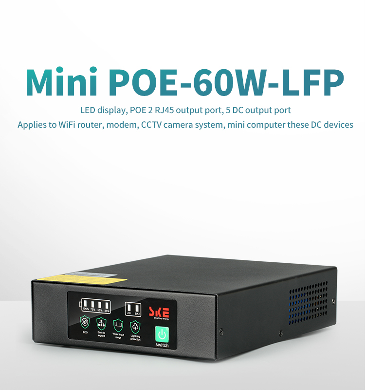 Mini POE60W-LFP DC UPS 9V 12V POE 24V 48V 16000mAh LiFePO4 Battery