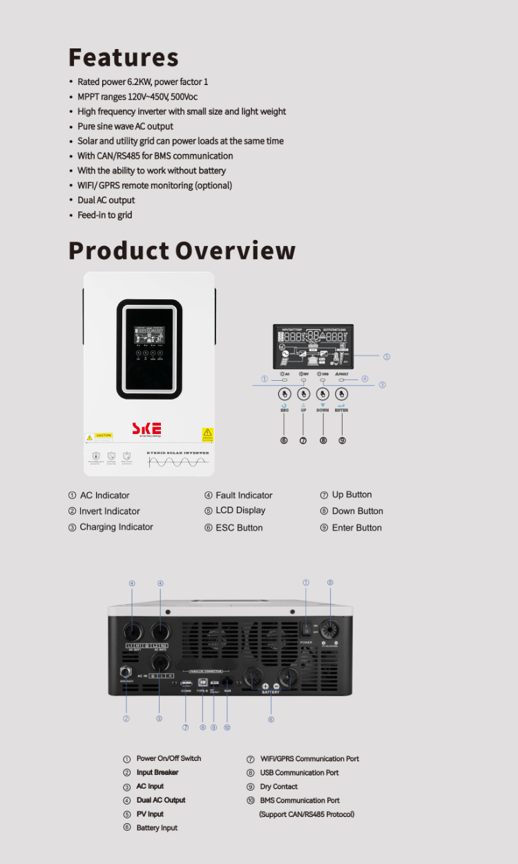 PH6200 Grid-tie with backup Off-Grid Solar Inverter 6.2KW